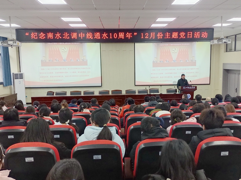 在丹江口校区学术报告厅,丹江校区分党委书记祝东喜带领大家重温了习近平总书记给湖北十堰丹江口库区环保志愿者的回信内容,呼吁党员师生牢记习近平总书记的嘱托,弘扬志愿服务精神,投身水源地保护活动。化学与环境工程公司分党委书记腊国庆以《深刻领悟党的二十届三中全会精神,做新时代南水北调“智慧守井人”》为题讲授专题党课。他以党的二十届三中全会精神为切入点,讲述了习近平总书记给湖北十堰丹江口库区环保志愿者的回信背后的故事,并号召大家积极响应中国式现代化湖北实践的十堰篇章,坚持守正创新,做南水北调“智慧守井人”,并对今后开展守水护水节水提出了工作建议。一是要深刻领会习近平总书记回信精神,增强守水护水的责任感和使命感。二是要结合党的二十届三中全会精神,推动环保志愿活动创新。三是要锚定中国式现代化实践目标,打造汉师生态环境保护志愿活动品牌。四是发挥公司人才培养作用,培养高质量生态环境保护志愿人才。五是加强志愿服务团队建设,提升整体现代化服务水平。六是广泛宣传发动,营造全民参与的良好氛围。