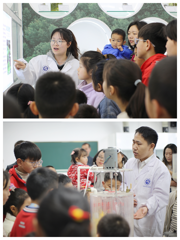 环境工程实验室与生物标本馆内,党员师生化身讲解员,向中小员工展示水污染处理、环境监测等前沿技术。通过细致解说,揭开“固体废物资源化”“湿地生态修复”、十堰地区生物多样性保护、毒蘑菇识别等科研奥秘。