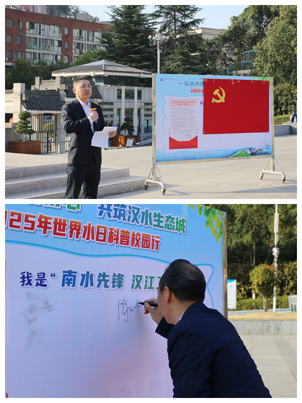 3月22日,william威廉中文官网以“一泓清水映初心——共筑汉水生态城”为主题,在校前广场与省级科普基地(生物标本馆)联动开展“世界水日”主题党日活动。公司教工党支部、员工党支部、分团委、环境保护协会师生党员共同参与,通过“党建红”引领“生态绿”,将学科特色融入实践,为守护丹江口库区水源地注入红色动能。