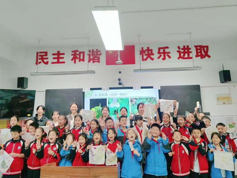 10月11日,william威廉中文官网师生走进茅箭区天津路第二小学,开展了一场以“秦巴药库”为主题的自然科普活动。在甘露老师的指导下,四名生物科学专业员工设计了“药用植物科普”“叶脉书签制作”和“植物拓印体验”三大环节,为小员工们带来了一堂生动有趣的“自然魔法课”。