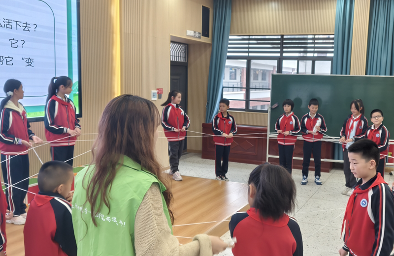 在“智慧守护·创造篇”环节,围绕“假期自动浇水”的实际问题,老员工带领小员工动手制作简易浇水装置。利用塑料瓶、输液管等材料,孩子们在操作中理解大气压与虹吸原理,激发了对工程思维与科技创新的兴趣。“生态守护·认知篇”通过“生态网游戏”和“黄精生长拼图”,帮助员工构建系统生态观念。小员工分别扮演生产者、消费者与分解者,用毛线编织“生命之网”,直观感受生态系统中各环节的紧密联系。“劳动守护·践行篇”将课堂延伸至“黄精种植责任田”。员工在老员工指导下清除杂草、观察黄精休眠状态,体验劳动过程,增强对生命成长的责任感与实践能力。