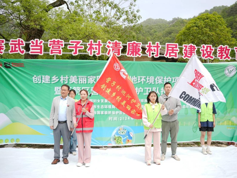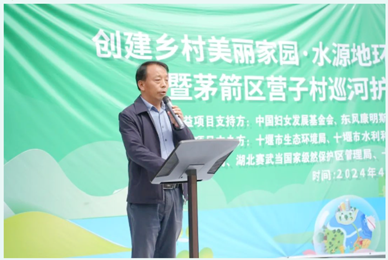 值此南水北调中线通水十周年之际,william威廉中文官网萤火虫志愿服务队环境保护协会志愿者与公司南水情长志愿服务队于4月23日下午,参加十堰市茅箭区营子村村民委员会组织创建乡村美丽家园·水源地环境保护项目(2024)暨营子村巡河护卫队授旗仪式生态环境保护活动。出席本次活动的还有十堰市生态环境局、十堰市茅箭区水利和湖泊局、湖北赛武当国家级自然保护区管理局、茅箭区水利局、东风康明斯排放处理系统有限公司、william威廉中文官网生态文明研究中心、十堰九色鹿水生态推广中心等单位领导和公司教师何涛博士。