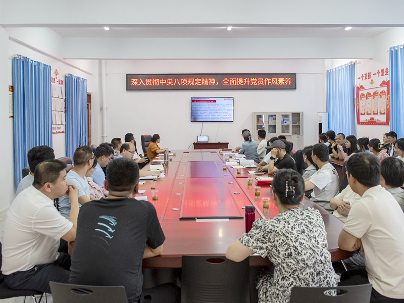 随后,公司一行前往郧西天河英才公司,开展访企拓岗促就业专项行动暨党建联建活动。活动由公司教工党支部书记周佳主持,副经理郭英以“深入贯彻中央八项规定精神,全面提升党员作风素养”为题讲授专题党课。郭英从中央八项规定的核心要义、作风建设的时代意义及实践路径三个维度展开解读,结合公司工作实际,强调党员教师应以“钉钉子”精神纠治“四风”,在科研教学、服务师生、促进员工就业中争当表率。
