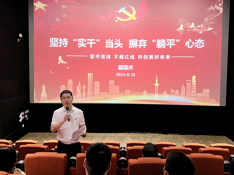 完成佩戴党徽、交纳党费、诵读党章、重温入党誓词和理论学习等规定动作公司分党委书记腊国庆以《坚持“实干”当头  摒弃“躺平”心态》为题讲授廉政党课鼓励全体师生在迎接本科教学合格评估的关键时候,要对标对表,挂图作战,克服困难,真干实干,保质保量完成各项迎评工作任务主题党日活动完成后,全体师生集中参加了反电信诈骗观影宣教活动